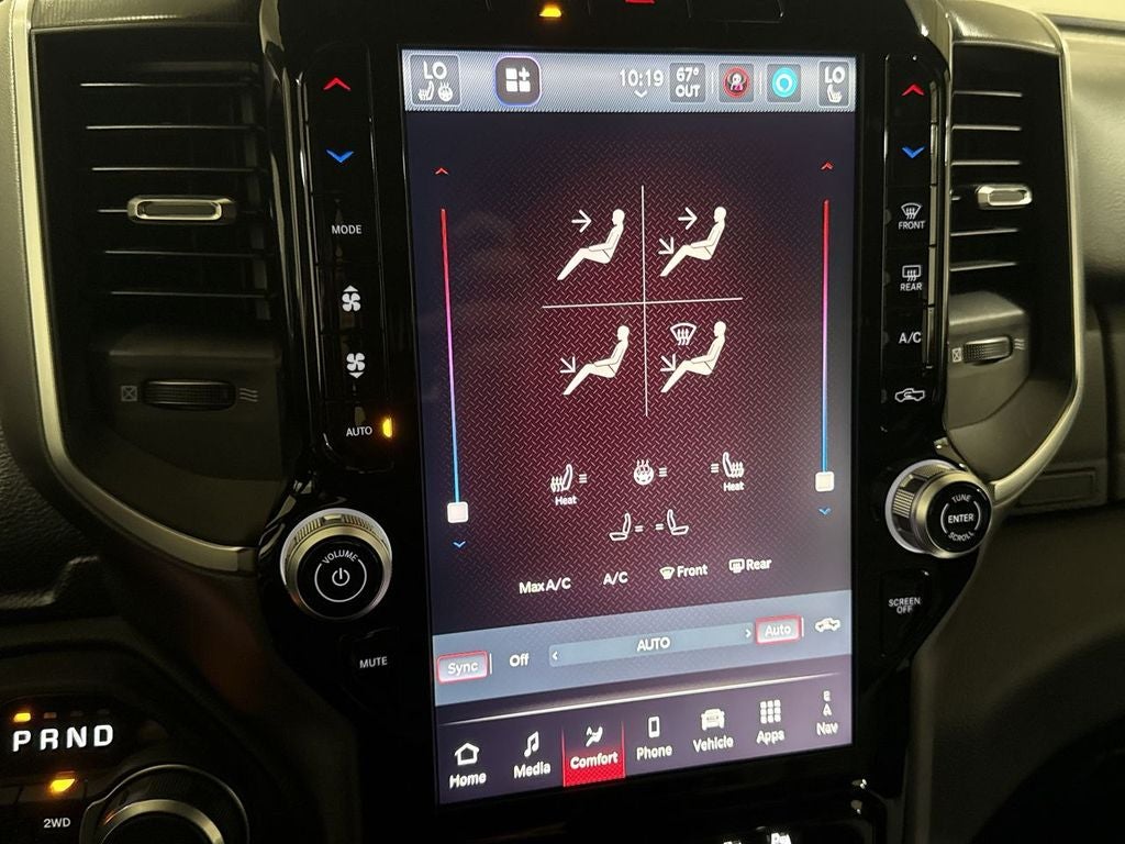 Elevate your driving experience with the Night Edition package, which adds distinctive black exterior accents, 20 aluminum wheels, and a host of premium features that exude confidence and style. The Big Horn Level 2 Equipment Group further enhances the driving experience with a premium sound system, remote tailgate release, and a wealth of advanced safety and convenience technologies.