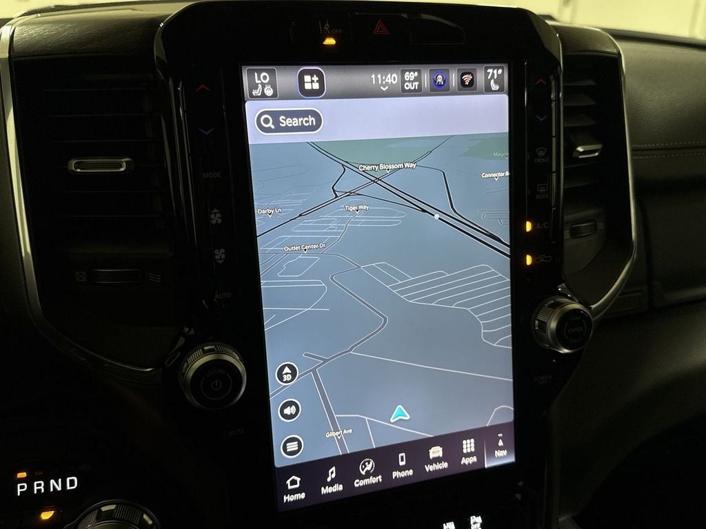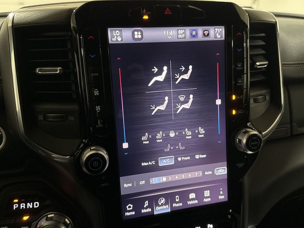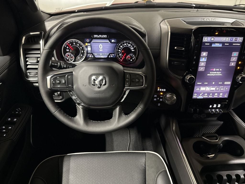 The attention to detail is evident throughout, from the chrome exterior accents and wheel-to-wheel side steps to the advanced safety technologies like Blind Spot Monitoring and Rear Cross-Path Detection. This Ram 1500 Laramie is designed to handle your toughest tasks while surrounding you in luxury.
