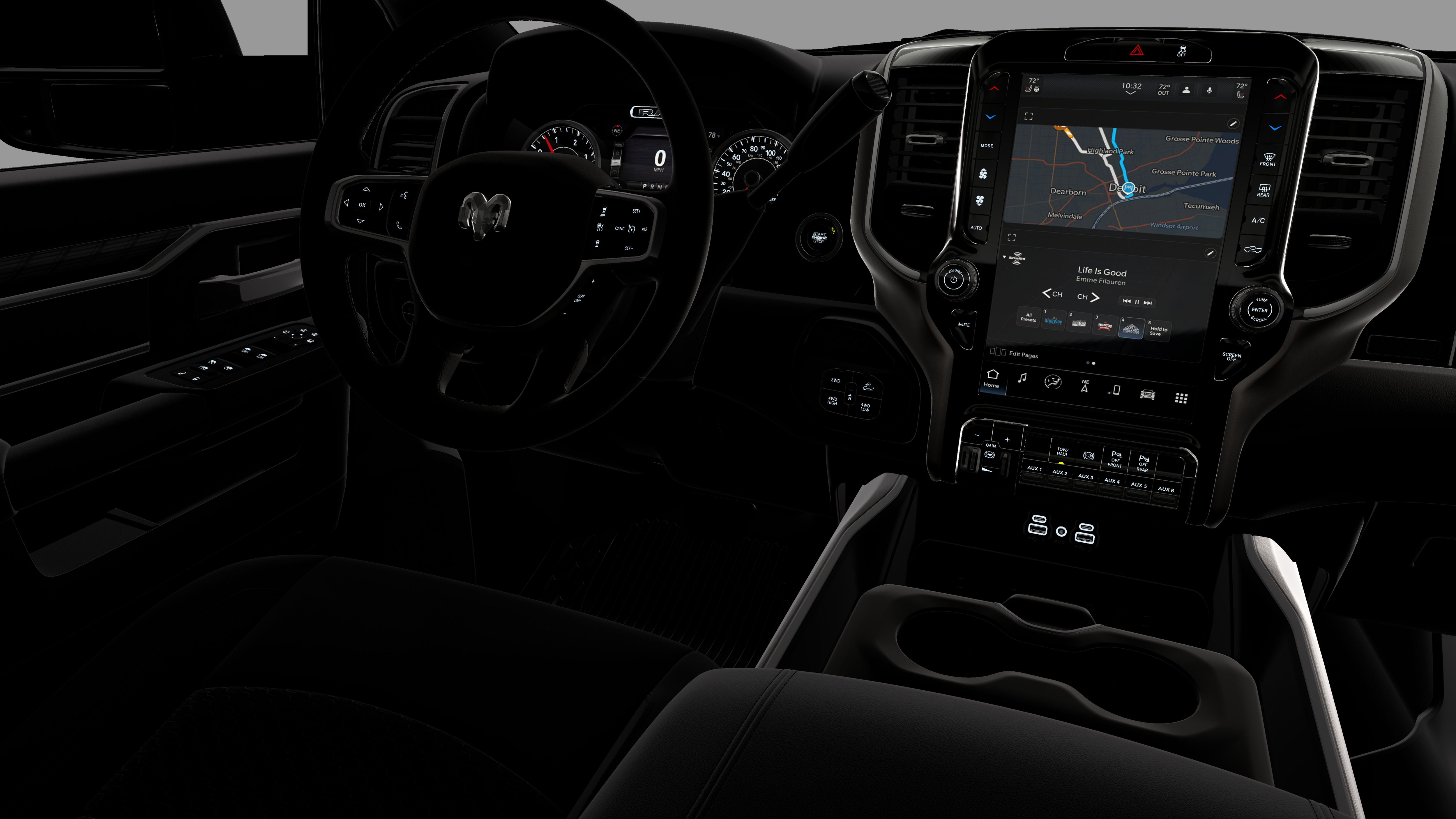 - Radio w/Seek-Scan, Clock, Speed Compensated Volume Control, Aux Audio Input Jack, Voice Activation, Radio Data System and Uconnect External Memory Control