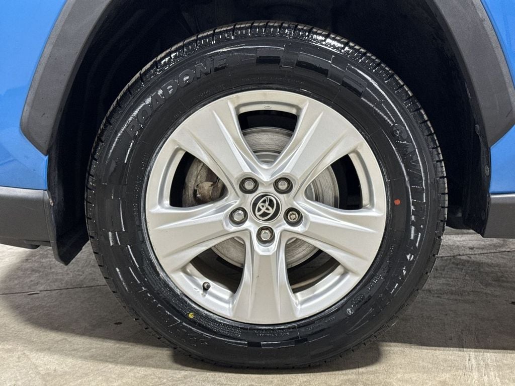This RAV4 Hybrid LE also boasts a sleek, modern exterior with stylish 17-inch alloy wheels, a roof rack, and a rear spoiler, giving it a bold and dynamic presence on the road. Inside, the spacious cabin is outfitted with premium fabric seats, a front center armrest, and a wealth of storage solutions to keep you organized and comfortable on every journey.
