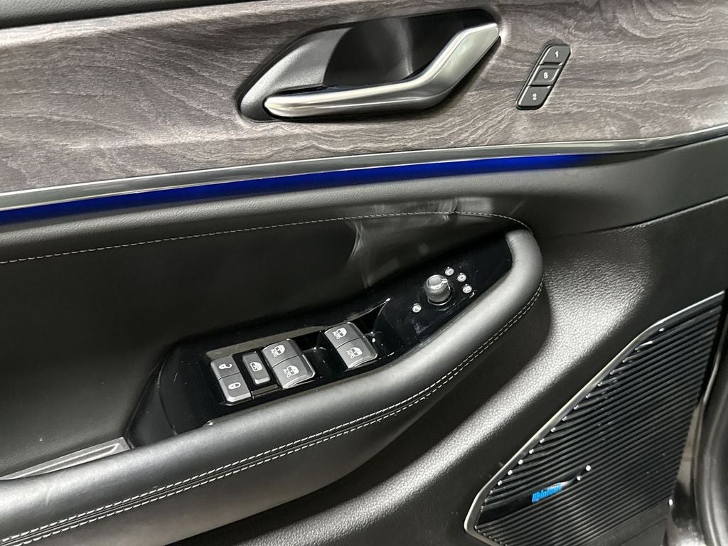 The exterior of the Grand Cherokee L Overland is equally impressive, boasting a sleek and sophisticated Black Diamond Black Crystal Pearlcoat finish that turns heads wherever it goes. The 20-inch machined face aluminum wheels and bold Jeep styling cues further accentuate the vehicle's rugged yet refined appearance.