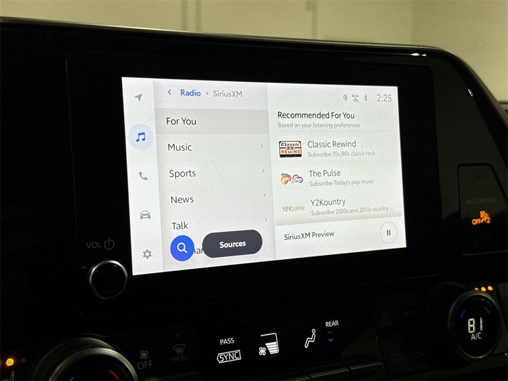 - Radio: 8" Toyota Audio Multimedia -inc: 6 speakers, wireless Apple CarPlay/Android Auto compatibility, USB media port, 4 USB charge ports, hands-free phone capability and music streaming via Bluetooth® wireless technology, SiriusXM w/3-month platinum plan trial subscription and Wi-Fi Connect including AT&T Wi-Fi hotspot w/up to 30-day or 3 GB trial subscription and integrated streaming (Apple Music and Amazon Music) compatibility w/1-month trial subscription for music services (4G network dependent)
