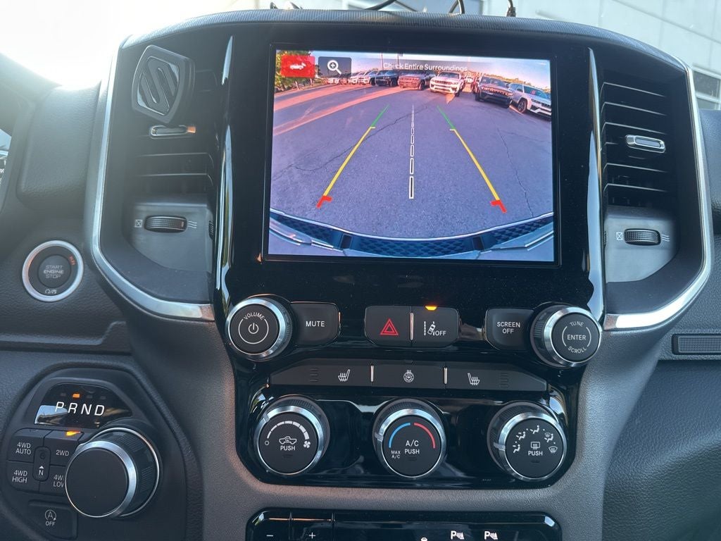 The Big Horn Level 1 Equipment Group elevates this Ram 1500 with a wealth of premium features. Enjoy the convenience of heated front seats, a heated steering wheel, power-adjustable pedals, and an auto-dimming rearview mirror. The Bed Utility Group adds a MOPAR spray-in bedliner, 4 adjustable cargo tie-down hooks, and a 115V AC outlet for powering tools or tailgate festivities. The integrated trailer brake controller makes towing a breeze, while the universal garage door opener and 400W power inverter add everyday versatility.